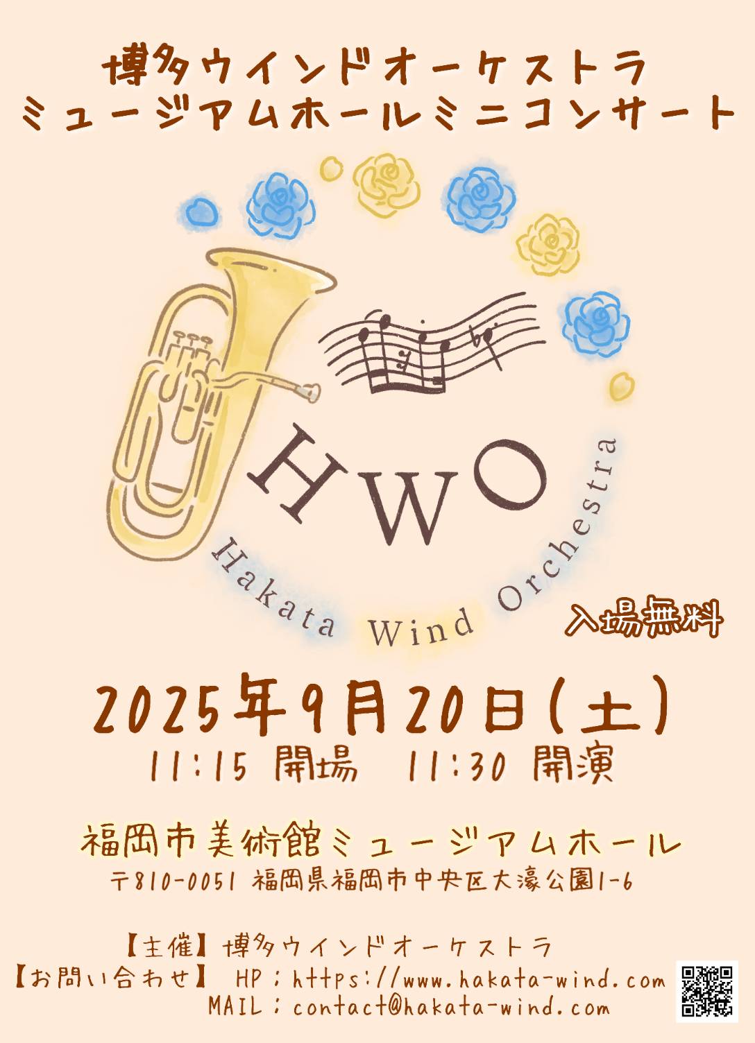 ミニコンサートのご案内ミニコンサートは盛会のうちに無事終了いたしました。ご来場いただいた皆様、応援していただいた皆様に厚く御礼申し上げます。 ![]() 2025年9月20日(土) 11時15分開場 11時30分開演 福岡市美術館ミュージアムホール (福岡県福岡市中央区大濠公園1−6) 【電車】地下鉄空港線大濠公園駅(福岡市美術館口)3・6番出口より徒歩10分 地下鉄七隈線六本松駅2番出口より徒歩10分 【バス】西鉄バス「福岡市美術館東口」下車 徒歩3分 西鉄バス「赤坂三丁目」下車 徒歩5分 西鉄バス「福岡城・NHK放送センター入口」下車 徒歩3分 入場無料 | ||||