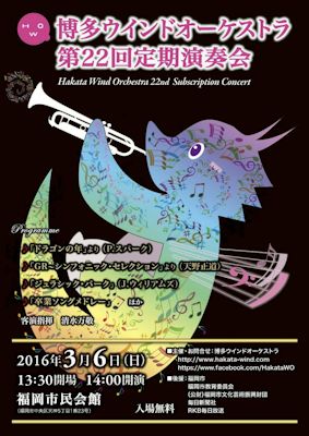第22回定期演奏会の記録![]() 2016年3月6日(日) 13時30分開場 14時00分開演 福岡市民会館 (福岡県福岡市中央区天神5丁目1番23号) 入場無料 指揮 清水 万敬 他